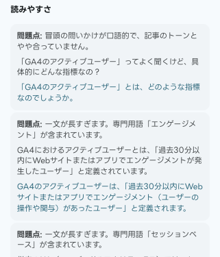 文章の読みやすさなどをチェックした上で、改善案を提案します。